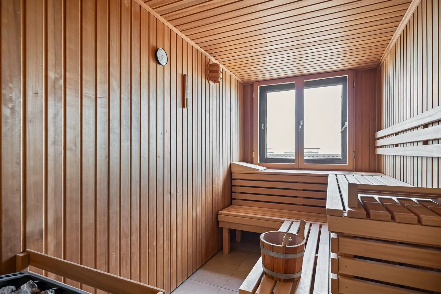 Die beiden modernen Duschbäder und das Vollbad sind wie kleine Wellness-Oasen, ausgestattet mit Radios für eine entspannte Atmosphäre. Nach einem erlebnisreichen Tag können Sie in der Sauna des Penthouse absolute Erholung finden und den Blick zum Westerhever Leuchtturm genießen.