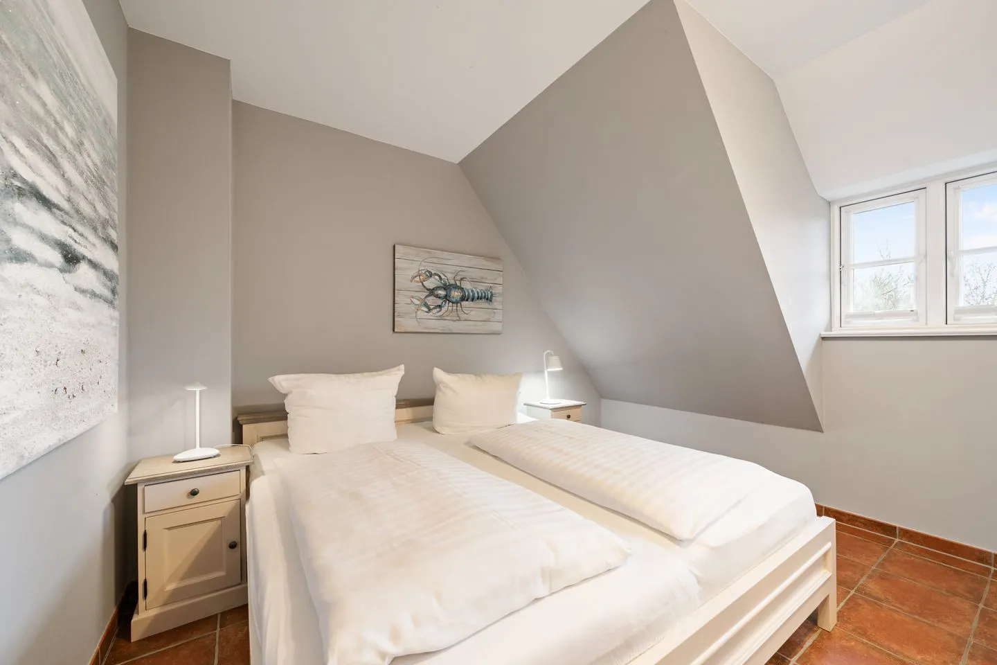 Im Erdgeschoss befindet sich der wunderschöne Wohnraum mit einem gemütlichen Essbereich und Zugang zu 2 Terrassen. Die offene Wohnküche ist mit allen wichtigen Geräten voll ausgestattet und lädt zum gemeinsamen Kochen ein. Ebenso ist im Erdgeschoss ein geräumiger Flur und ein Gäste WC. Im Obergeschoss befinden sich zwei Schlafzimmer. Eines mit einem Doppelbett und großem Kleiderschrank und ein weiteres mit 3 Schlafplätzen, einem Doppelbett und einem Einzelbett. Außerdem ist im Obergeschoss ein geräumiges Vollbad mit Eckbadewanne. Zusätzlicher Luxus im Obergeschoss ist ein weiteres Gäste-WC.