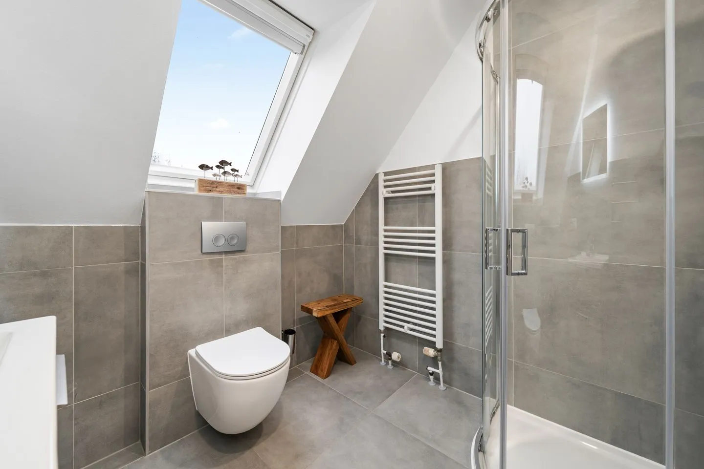 Fliesen im Obergeschoss und Laminat im Spitzboden bieten einen sehr guten Wohnkomfort.