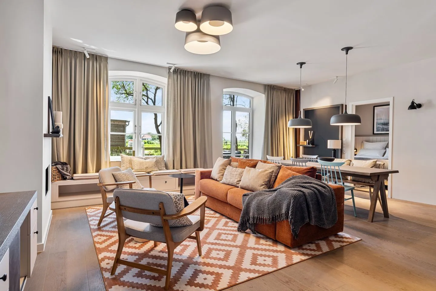 Jedes Domizil wurde von dem renommierten Designer Olaf Kitzig hochwertig ausgestattet. Von hochwertigen Tischlereinbauten bis hin zu exklusiven Ausstattungsdetails in Badezimmern und Küchen erwartet Sie hier ein Höchstmaß an Wohnkomfort. Genießen Ihren Auszeit in der Alten Schule in Westerhever. Das Grundstück ist Parkähnlich und mit heimischen Pflanzen angelegt. Zudem wird das Grundstück durch zwei Wasserläufe am Ende des Grundstücks begrenzt.