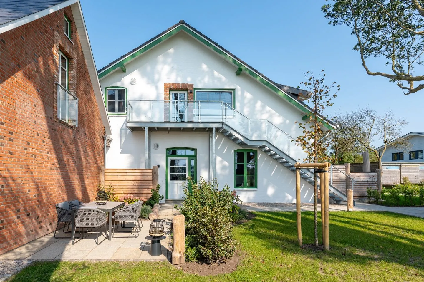 Jedes Domizil wurde von dem renommierten Designer Olaf Kitzig hochwertig ausgestattet. Von hochwertigen Tischlereinbauten bis hin zu exklusiven Ausstattungsdetails in Badezimmern und Küchen erwartet Sie hier ein Höchstmaß an Wohnkomfort. Genießen Ihren Auszeit in der Alten Schule in Westerhever. Das Grundstück ist Parkähnlich und mit heimischen Pflanzen angelegt. Zudem wird das Grundstück durch zwei Wasserläufe am Ende des Grundstücks begrenzt.